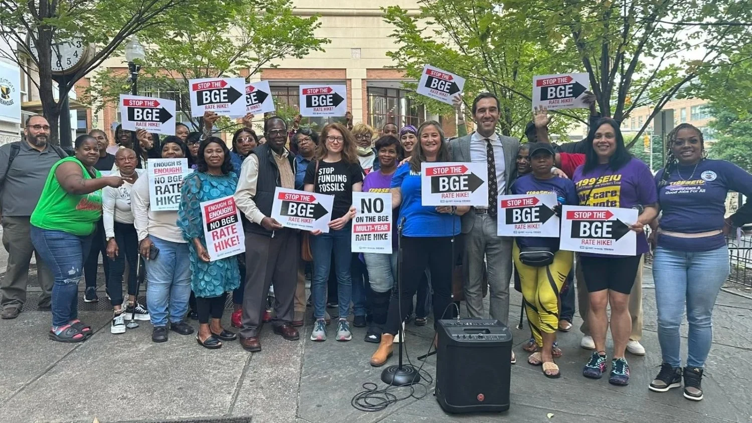 Coalition and community members speak out against BGE's proposed multi-year rate hike at final public hearing. Credit: Staff.